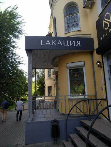 2) Laкация. Не уверен, какая именно игра скрывается за наложением локации на акацию. L’акация? Что бы там ни таилось, автор забыл о звучном русском слове «лакать». По типографике я бы предположил салон красоты, а по смыслу выходит максимум собачий ресторан или дешёвая рюмочная. Жак Лакан не одобряет.